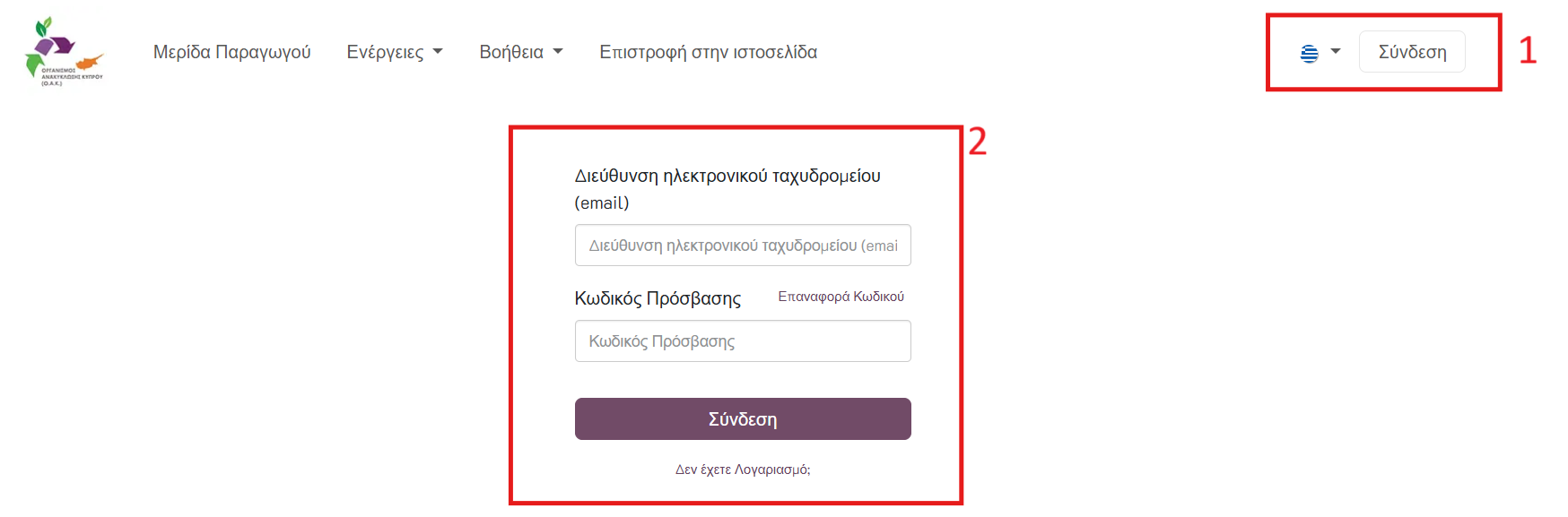 ⚠️ Προσοχή: Ο προσωπικός κωδικός πρόσβασης είναι αυστηρά προσωπικός και δεν επιτρέπεται να κοινοποιείται σε τρίτα πρόσωπα. Σε περίπτωση απώλειας ή υποψίας παραβίασης, ο χρήστης οφείλει να ενημερώσει άμεσα τον Οργανισμό για επαναφορά ή αλλαγή κωδικού.
